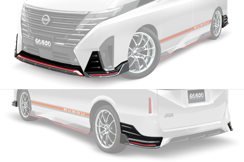 ・フロント中央レッドラインは塗装となります。 ・左右モール部分は、レッド/シルバー両方同梱となります。 ・フロントスポイラーとリアスポイラー(左右)のセットとなります。 ※F/Rセットは、サイドスポイラーとリアセンターは付属しません、別売りとなります。 通常単品合計:¥308,000- F/R SETとの差額:¥33,000- |