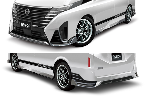 ・片側前後の2ピース、左右セット ・サイド部分下部前後に装着する製品となります。 ・BGS-28SSS:ガンメタ/下部ブラック 2色塗分塗装 ・BGS-28SSR:ガンメタ/下部レッド 2色塗分塗装 |
