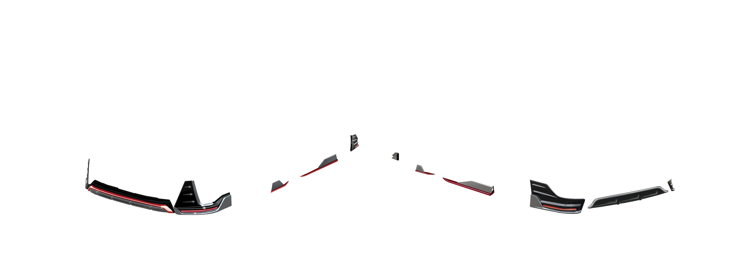 ・フロント中央シルバーラインは塗装となります。 ・左右モール部分は、レッド/シルバー両方同梱となります。 ・フロントスポイラーとリアスポイラー(左右)のセットとなります。 ※F/Rセットは、サイドスポイラーとリアセンターは付属しません、別売りとなります。 通常単品合計:¥308,000- F/R SETとの差額:¥33,000- |